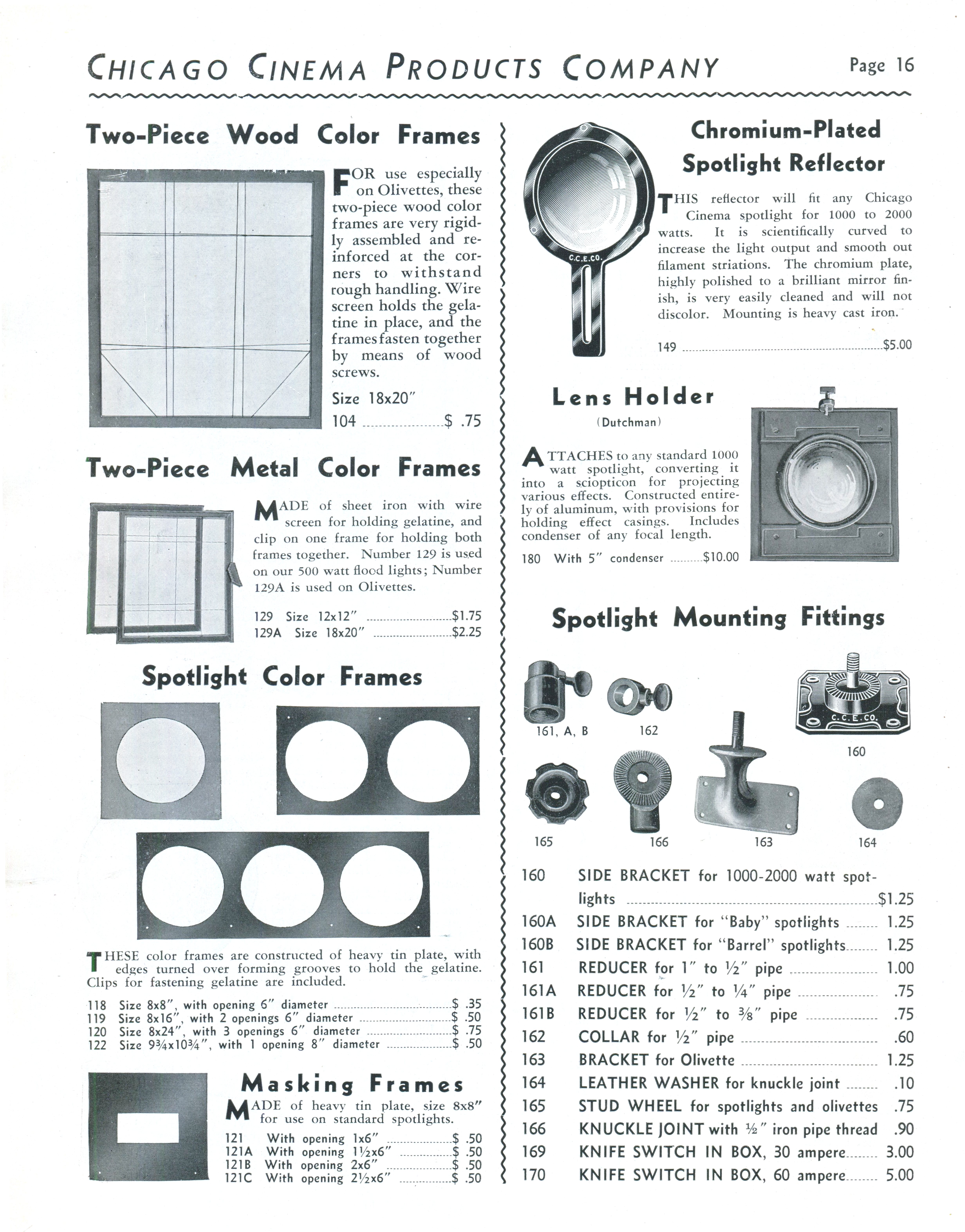 CHICAGO CINEMA PRODUCTS CATALOG (1936) Successors to GALLAGHER ORCHESTRA EQUIPMENT CO.